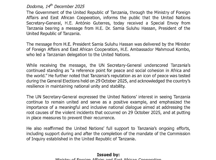 The Embassy of the United Republic of Tanzania in Ankara, Türkiye would like to inform the general public of the Republic of Türkiye that the Nelson Mandela African Institution of Science and Technology…