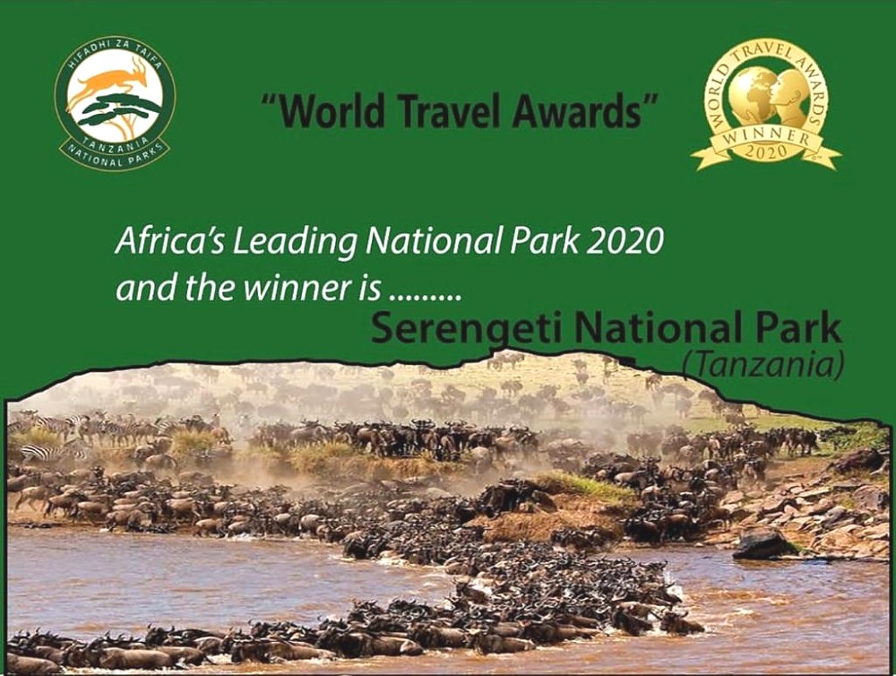 The 27th World Travel Awards WTA has announced Serengeti National Park as the 2020 Africa's Leading National Park. Serengeti has won this category ( Africa's Leading National Park) for two consecutive years now, 2019 and 2020. The Serengeti speak for itself and with good reason not only the femous event of more than 1.5 million wildebeest migration through its plains and woodlands, but also unique landscapes and other spectacular wildlife.