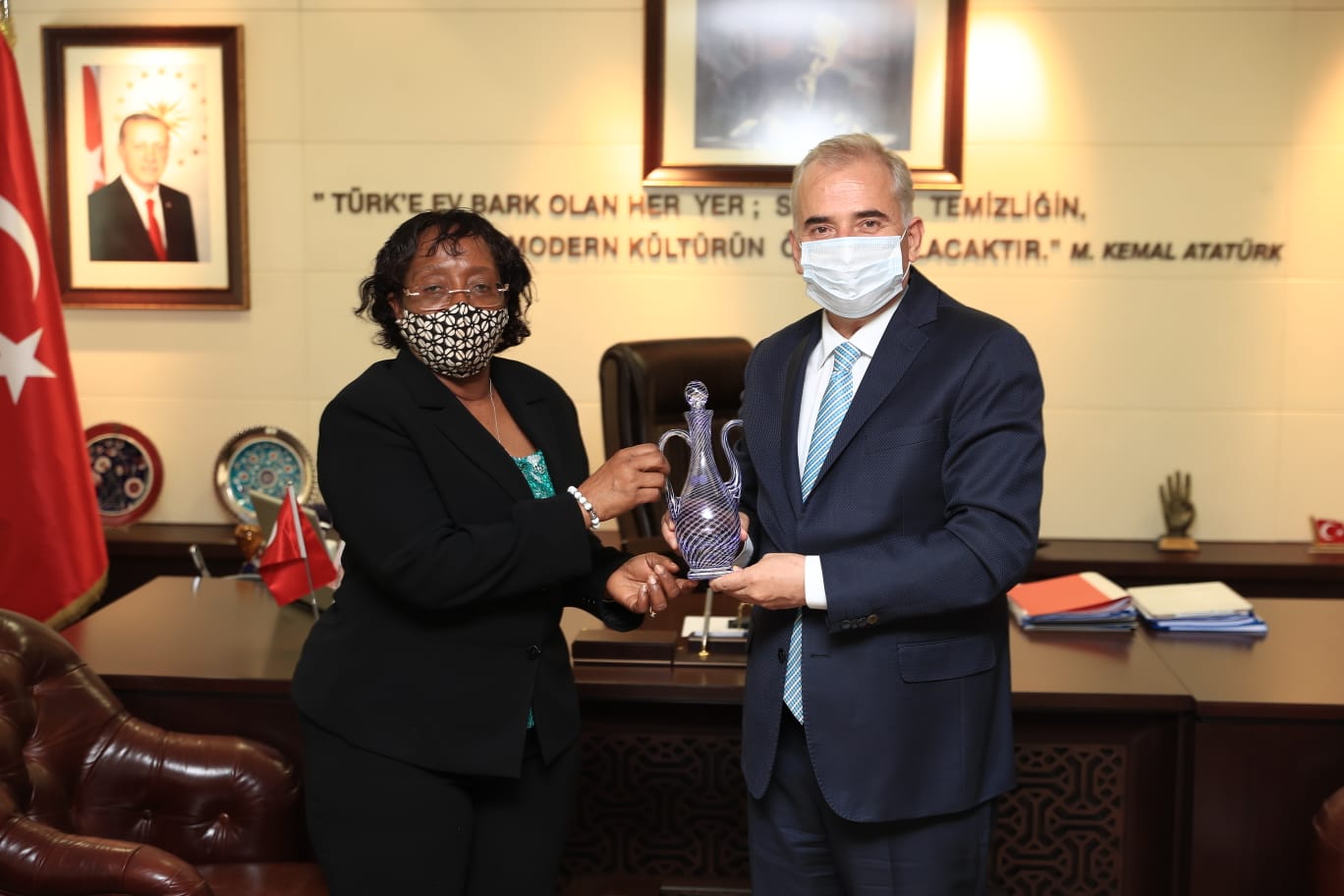 Ambassador of the United Republic of Tanzania in Ankara - Turkey Prof. Elizabeth K. Kiondo met with the Governor of Denizli Mr. Ali Fuat Atıak at Governor's office. This was due to the visit by Her Excellency on 08-09 October 2020 at Denizli. The visit will strengthen the bilateral and economic cooperation between Tanzania and Turkey inorder to increase cooperation and trade. Also the mission’s objective of increasing economic, educational and social relations.