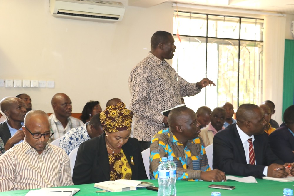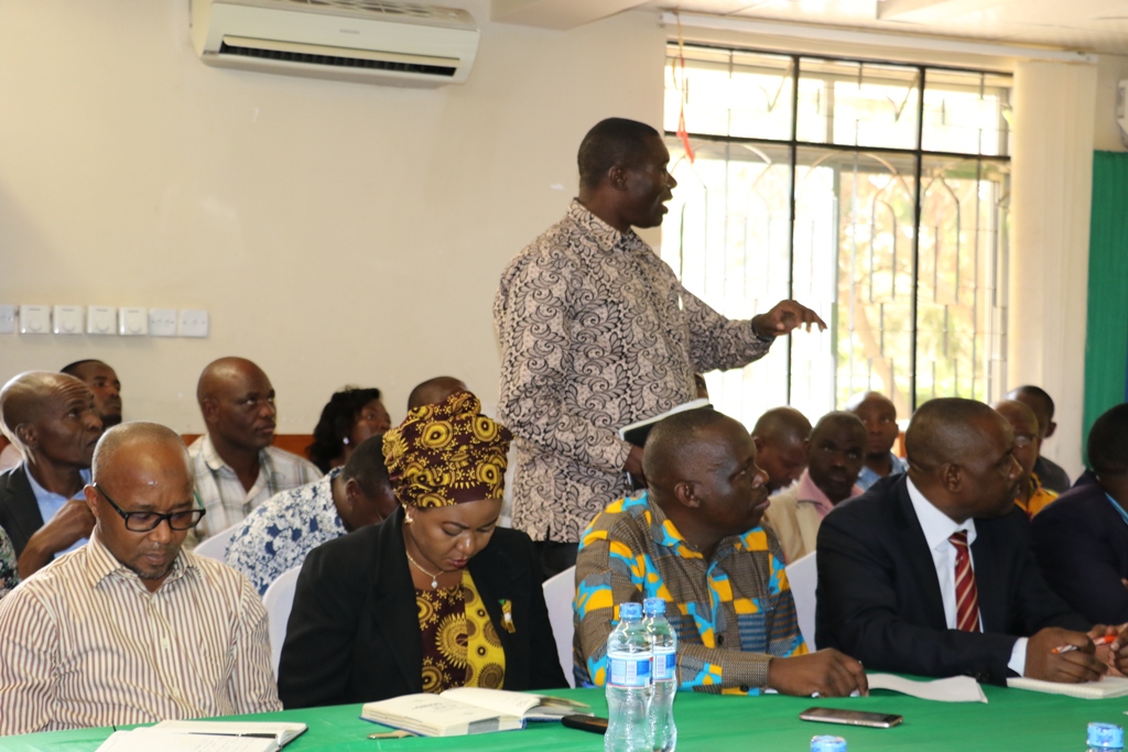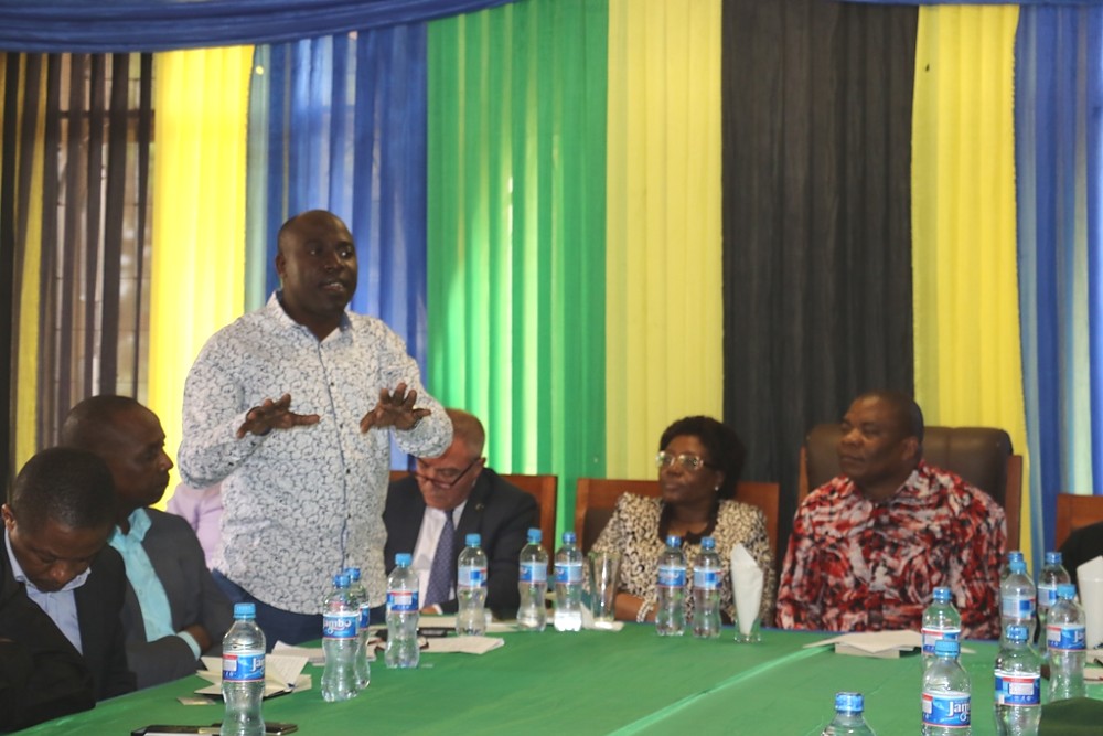 Mkurugenzi wa Kiwanda cha kuchambua Pamba cha Alliance Ginnery, Bw. Boaz Ogola akichangia hoja katika viongozi wa Mkoa wa Simiyu, baadhi ya viongozi wa Taasisi za Serikali, Balozi wa Tanzania nchini Uturuki Mhe. Prof. Elizabeth Kiondo na Rais wa Jumuiya ya Wafanyabiashara na mwakilishi wa Wafanyabiashara kutoka Uturuki, Bw. Cengiz ERTAS, kilichofanyika Novemba 22, 2018 Mjini Bariadi kwa lengo la kujadili uwekezaji katika viwanda vya nguo mkoani humo.